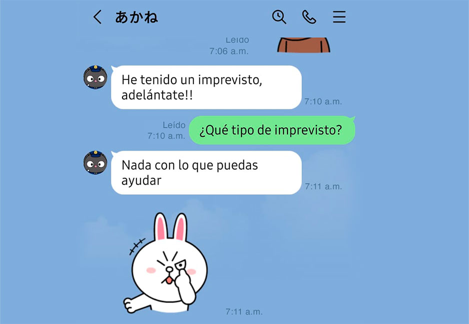 Espero unos segundos y escucho el sonido del mensaje entrante. Akane maldice, las puertas son correderas, prácticamente de papel.