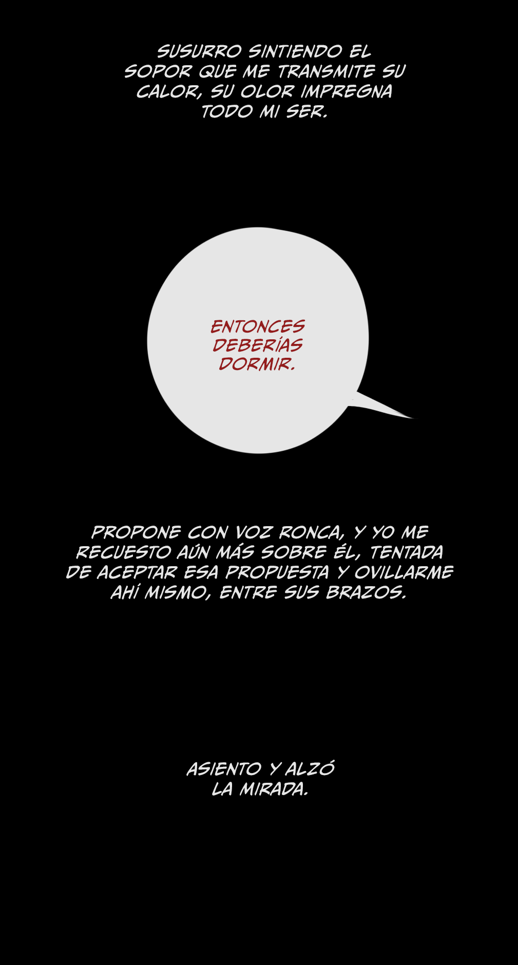 Es un piso grande, me enseña el aseo y el baño (¡con bañera!), y después me hace pasar a su habitación. Me siento abrumada cuando su olor invade por completo mis fosas nasales y recorro con ojos ávidos todos y cada uno de los rincones de esa habitación.