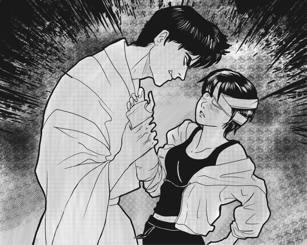 —¡No puedes levantarte! —exclama alterado—. Has perdido muchísima sangre.